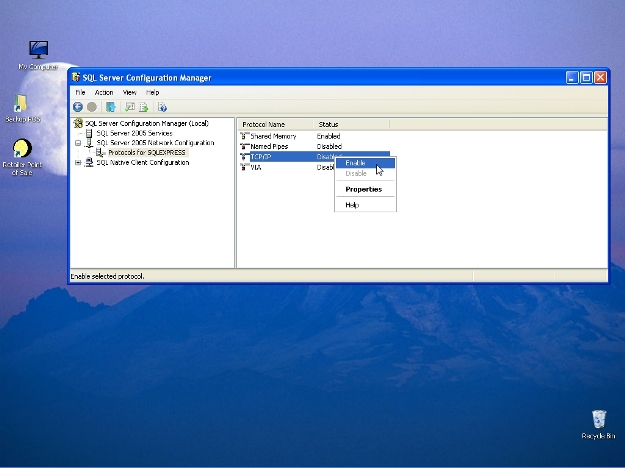 Select “Protocols for SQLEXPRESS”. The protocols on the right should be as shown in the picture.