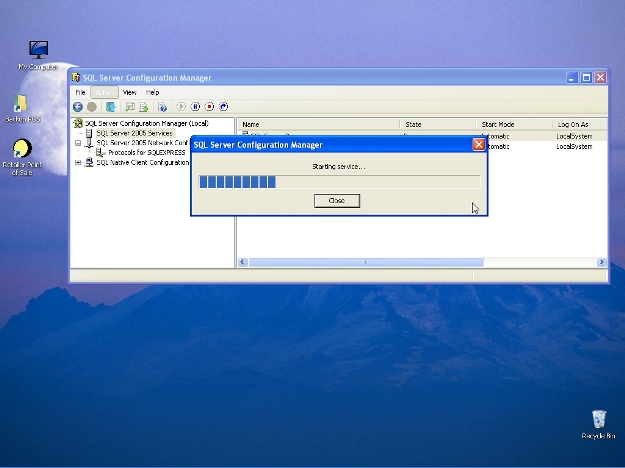 A reminder message to STOP and then RESTART the SQL server and the SQL browser.