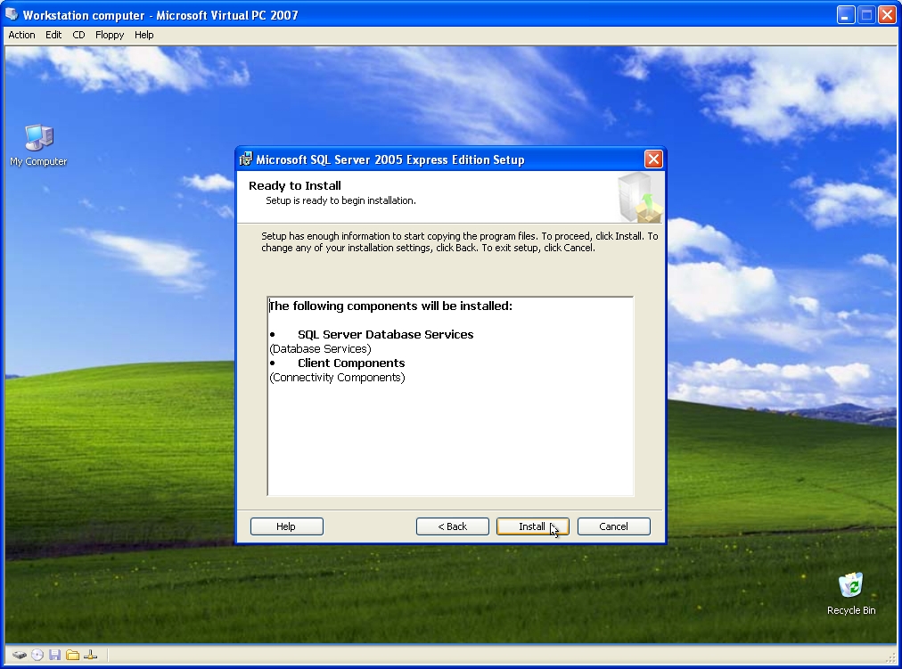 The program is now ready to install “Microsoft SQL Server Management Studio 2005 Express”. Click install to continue.