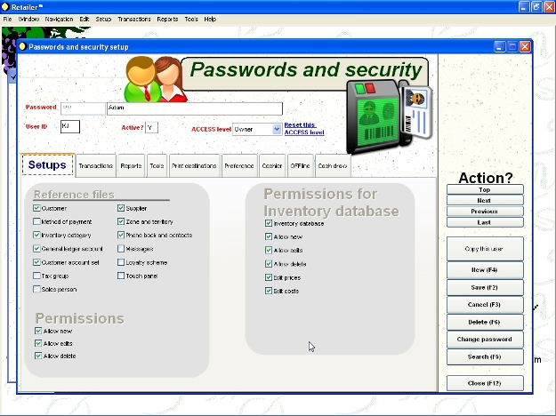 Sales for a touch screen computer. Displays up to 30 items for each category. Touch screen menu is created and modified by the touch screen setup.